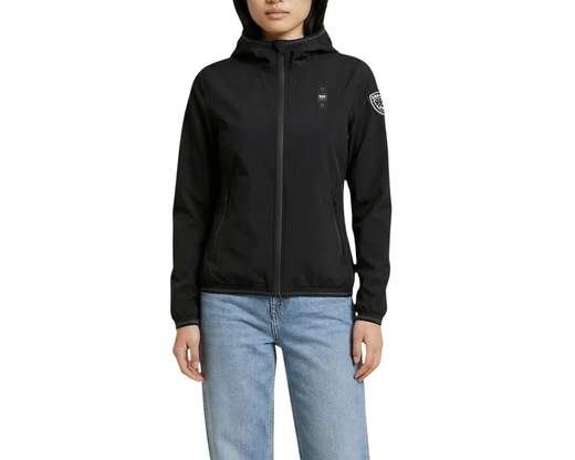 BLAUER GIUBBINO DONNA NAY antivento e antipioggia con cappuccio fisso e cuciture termosaldate. Chiusura e tasche con zip, fettuccia elastica rigata su polsini, fondo e cappuccio, patch e passante con logo.Codice