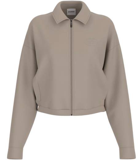 Giacca guess Annie donna crop scuba con zip maniche lunghe.Colletto a camicia chiusura con zip logo stampato.
