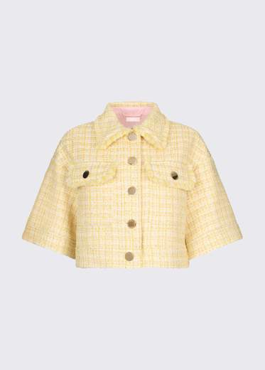 Questa giacca corta in bouclé ha un’allure contemporanea, definita da un taglio boxy con delicati interventi in lurex. Perfetta per elevare i tuoi denim e gli essenziali da giorno, oppure in coordinato con la mini per un look più sofisticato.