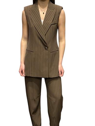 Gilet donna maryley lungo gessato con spalline monobottone lateraleCodice