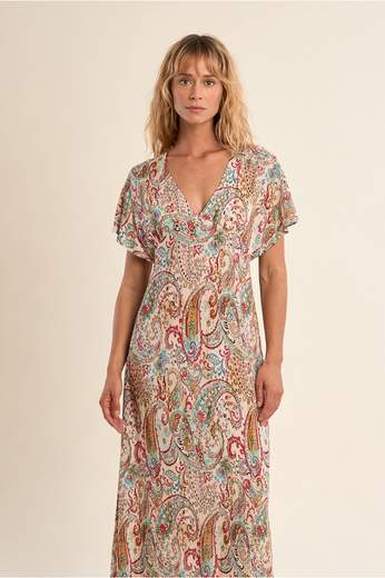 Abito donna molly braken lungo e svolazzante con stampa paisley-Scollo a V