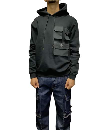 Felpa uomo yes london tasche multitasche tinta unita con applicazioni chiusura con cerniera collo e con cappuccio